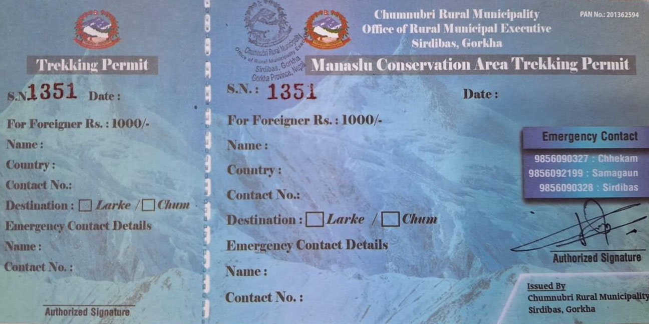This is the main permit you need to trek in the Manaslu region including Manaslu Circuit Trek. It is issued by the Department of Immigration in Kathmandu through authorized local trekking agencies.